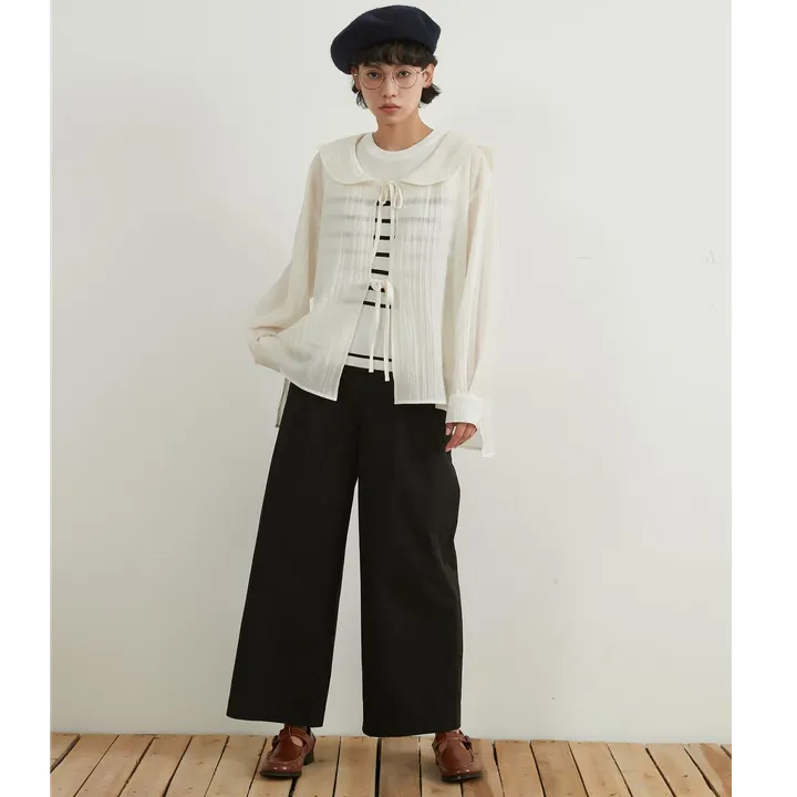 ベーシックなデザインでオン/オフ問わず幅広いオケージョンに着用いただけます。タックの入ったゆったりとしたシルエットで履きやすく、ボリューム感のある太幅のスラックスパンツなので太もものハリも気にせず心地よく履けるパンツを作りました。後ろウェストゴム仕様で窮屈感なし。内側の縫い代部分もバインダーを施した丁寧な造りになっています。ブラックとウィートのベーシックカラーと共にピーコックブルーのさし色もオールシーズンで使えて色違いで持ちたいアイテムになっております。この商品は水洗い加工を施してあります。ガーメントウォッシュの風合いをお楽しみください。 サイズ  着丈  ウェスト  ヒップ㎝ S    94   60~86    108 M    96   64~90    112 L    98   68~94    116   素材:綿100% 透け感:なし 生地の厚さ:普通 光沢感:なし 裏地:なし 家庭洗濯:可能 【注意点】 ※撮影商品はサンプルの為、実際の仕様と異なる場合がございます。 ※画像の商品は光の照射や角度、お使いのモニター環境により、実物と色味が異なる場合がございます。スタジオ物撮りの画像が実物の色味に一番近くなっております。 ※予約商品の場合、お届け予定はあくまでも目安となります。 生産の都合上、お届け時期がずれる場合がございますので、あらかじめご了承ください。 ※表記サイズは商品の実寸です。 ※布製品の特性上、サイズ表の実寸法は多少の誤差が生じる場合がございますので、予めご了承ください。 #コットン100%#コットン100%パンツ#綿100%#綿100%パンツ#ルーズフィットパンツ#長ズボン#ワイドパンツ#綿100%ワイドパンツ#天然素材#サステナブルファッション#エシカルファッション#春夏パンツ