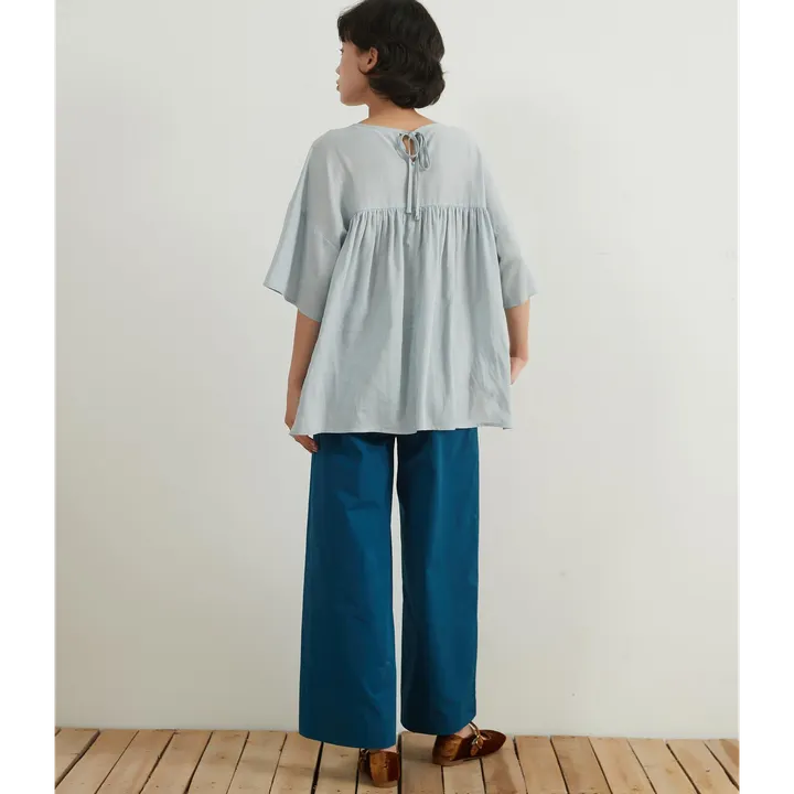 ベーシックなデザインでオン/オフ問わず幅広いオケージョンに着用いただけます。タックの入ったゆったりとしたシルエットで履きやすく、ボリューム感のある太幅のスラックスパンツなので太もものハリも気にせず心地よく履けるパンツを作りました。後ろウェストゴム仕様で窮屈感なし。内側の縫い代部分もバインダーを施した丁寧な造りになっています。ブラックとウィートのベーシックカラーと共にピーコックブルーのさし色もオールシーズンで使えて色違いで持ちたいアイテムになっております。この商品は水洗い加工を施してあります。ガーメントウォッシュの風合いをお楽しみください。 サイズ  着丈  ウェスト  ヒップ㎝ S    94   60~86    108 M    96   64~90    112 L    98   68~94    116   素材:綿100% 透け感:なし 生地の厚さ:普通 光沢感:なし 裏地:なし 家庭洗濯:可能 【注意点】 ※撮影商品はサンプルの為、実際の仕様と異なる場合がございます。 ※画像の商品は光の照射や角度、お使いのモニター環境により、実物と色味が異なる場合がございます。スタジオ物撮りの画像が実物の色味に一番近くなっております。 ※予約商品の場合、お届け予定はあくまでも目安となります。 生産の都合上、お届け時期がずれる場合がございますので、あらかじめご了承ください。 ※表記サイズは商品の実寸です。 ※布製品の特性上、サイズ表の実寸法は多少の誤差が生じる場合がございますので、予めご了承ください。 #コットン100%#コットン100%パンツ#綿100%#綿100%パンツ#ルーズフィットパンツ#長ズボン#ワイドパンツ#綿100%ワイドパンツ#天然素材#サステナブルファッション#エシカルファッション#春夏パンツ