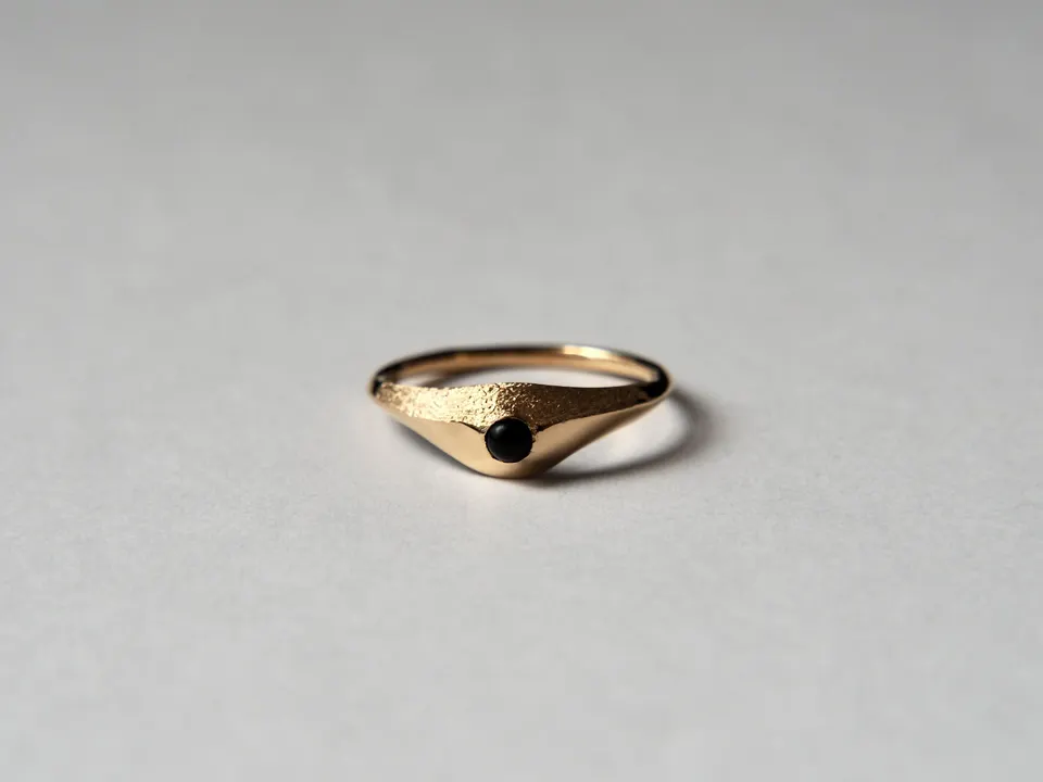・コンセプト 「心の内に秘めた光を引き出し、身に纏う人そのものを輝かせたい。」 人は誰しも、心にきらりと輝く光を持っています。その光は、人それぞれに形が異なるからこそ美しく、素晴らしい。Rinnは、心に宿る光に寄り添うように、身につける人そのものを輝かせるジュエリーを提供しております。 「毎日身につけても壊れにくく、時を重ねるとともに肌に馴染んでいくようなジュエリーを」 Rinnは身につける人の肌と生活に馴染むジュエリーを提供しております。 ・デザイン 「他になく、永く愛されるデザインを。」 ジュエリーのデザインは、日常に溶け込んだささやかな美しさから生まれます。 例えば揺らめく布の柔らかさに触れた時や、朝陽が昇る瞬間に霞んでいたものが透き通って見えた時、感じ取った自然の美しさがジュエリーの形になっていきます。 そこへクラシカルな要素を取り入れることで、"Rinnにしかないデザイン"を意識いたしました。 お客様の生活に寄り添い続けるために、永く愛され続けるデザインにこだわりました。 そこには「親から子へと、時代を超えて受け継がれていって欲しい」という想いも込めております。どんな人にもどんな装いにも、しっくりと馴染み続けていくよう願いを込めてジュエリーを製作しております。 ・アイテム 2種類のテクスチャを用いて、時と共に移り行く空気感を表現しました。中央のオニキスが全体を引き締め、高級感のあるデザインになっております。