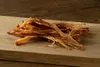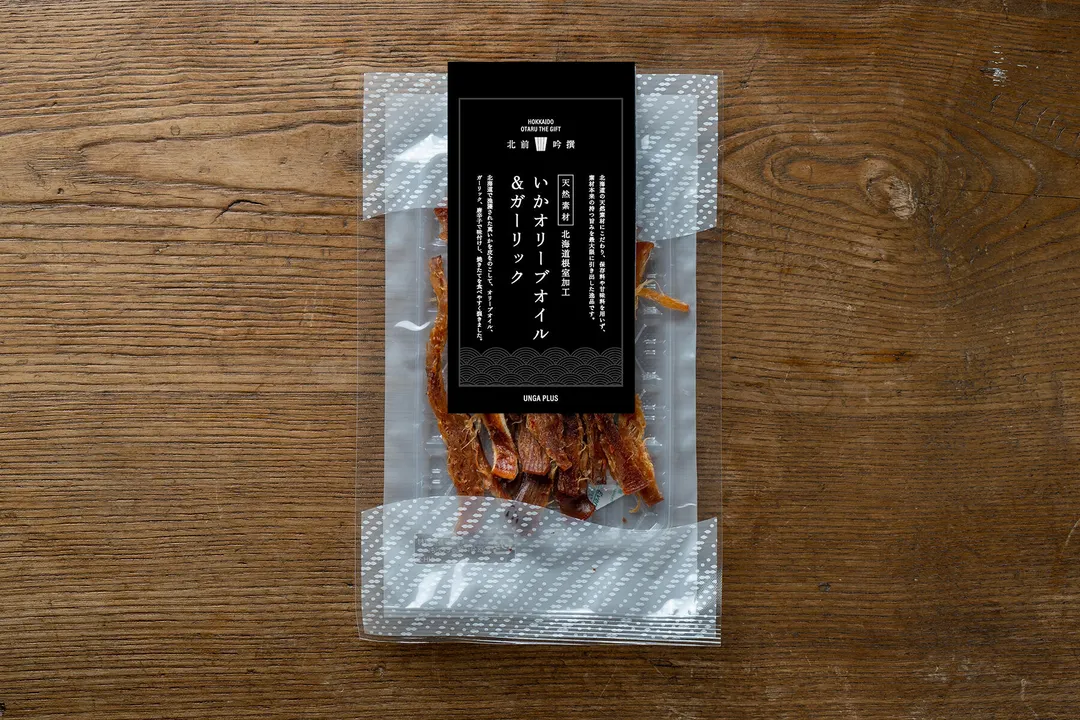 スルメイカを旨味を逃さぬように皮をつけたまま刺激を求めて唐辛子、ガーリック、本場イタリアのオリーブオイルを調味に使い、焼きたてのままソフトに裂きました。 北海道で獲れた新鮮で良質な水産物を使用し、素材の旨味を最大限に活かした珍味です。味付けには北海道産の昆布を使った昆布だしと昆布醤油、国産原料で作ったかつおだしとしいたけだし、根室で漁獲されたサンマを使用したさんま魚醤のこだわりの調味料を使用しています。