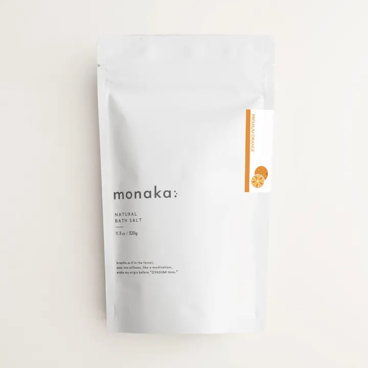 monaka ナチュラルバスソルト プレミアムみかん 40g(1回分) / 320g(8回分) 【森の中を歩くような心地よい入浴を】 目指したのは「極上のバスソルト」 花や果実、草木など、自然そのままの香りや色合いを大切に仕上げました。 まるで素材を味わうかのように浸る、優しい入浴時間。 【プレミアムみかん】 みかん精油 × みかん果皮 -みかんの懐かしさと温かさに包まれる、陽だまりの香り- まるでみかん畑!? もぎたて蜜柑に包まれて、ふと笑顔がこぼれるような香り♪ 【LINE UP】 〇プレミアムヒノキ 〇プレミアムはちみつレモン 〇はちみつジンジャー 〇ゆずシトラス 〇プレミアムみかん 〇プレミアムラベンダー 〇プレミアムローズ 〇クレイ月桃 〇キャラメルシナモン 〇キャラメルバニラ 【ミネラル豊富で環境にも優しい天然塩】 西オーストラリアの塩田で製造される「シャークベイソルト」を使用。 太陽と風の力で2~3年かけて結晶化させる「天日塩製法」で作られた塩は、環境にも優しいだけでなく、 カルシウム・マグネシウムなどのミネラル成分が豊富に含まれる。 【ヒアルロン酸Na配合】 1gで約6Lもの保水力を誇る、保湿美容成分を配合。 【使用法】 140~160Lのお湯に対して40g程度を目安に入浴前に入れてご使用ください。 付属のメッシュ袋に中身を詰めてお使いください。 【お知らせ】 ●追い焚きしないでください。 ●色や香りが残らないよう、入浴後はすぐに洗い流してください。 ●商品の特性上、LOTや時間で色や香りが変わることがあります。 ●本品は雑貨です。 【販促物】 ◇ブランドカード(A5サイズ) ◇各種香り説明カード(名刺サイズ/縦) ◇共通プライスカード(名刺サイズ/横) ご入用の方は、備考欄にてお申し付けください。 関連ブランド・・・ ◇tamamono organic = 植物の力で心と体を整える / オーガニックコスメ、アロマ ◇WAKAPLUS = 和の香りを日常にプラスする / バスソルト ◇manaplus PRO = 美容サロンなどで使用するプロユースコスメ / キャリアオイル、アロマ ◇KOTOLABO = 京都発のフレグランスブランド / 練り香水、お清めミスト ◇monaka = 素材を味わう10種のバスソルト / ヒノキ、はちみつレモン、ラベンダー など