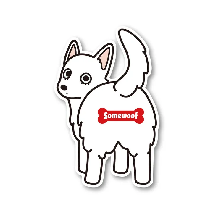 大人気のSomewoofオリジナルのホワイトシェパードのステッカーの単品販売です。 人気イラストレーター hoppeさん描き下ろしの犬種イラストのお尻にSomewoofのロゴが入ったかわいらしいステッカーをオンラインでも発売します! サイズ:W51m×H77mm 仕様:屋内用 材質:ミラーコート