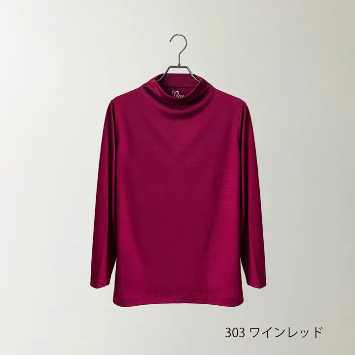 メリノウール ボトルネック長袖カットソー 303ワインレッド Lサイズ