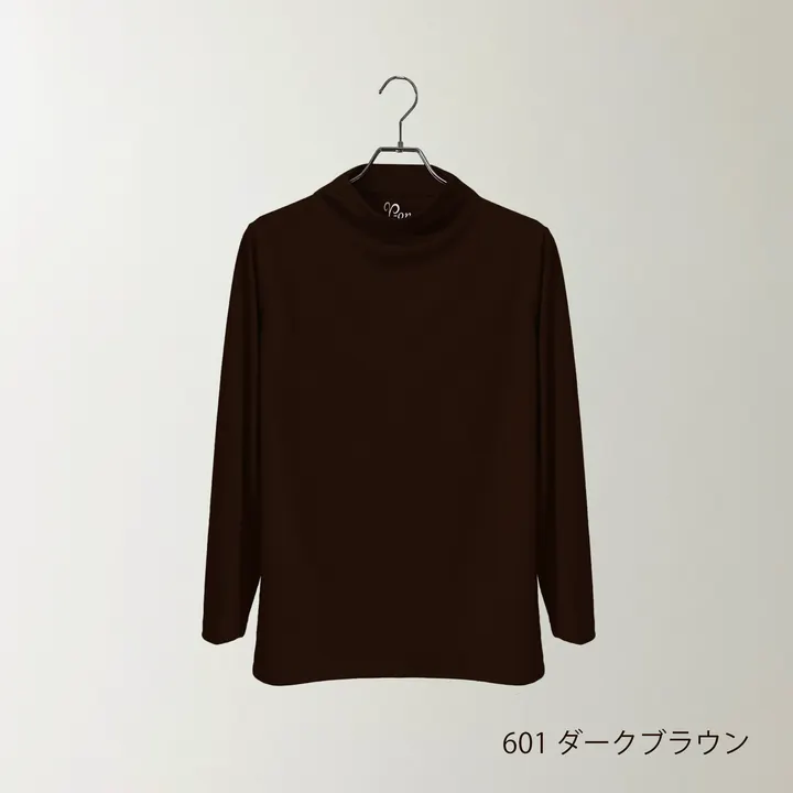 メリノウール ボトルネック長袖カットソー 601ダークブラウン Sサイズ