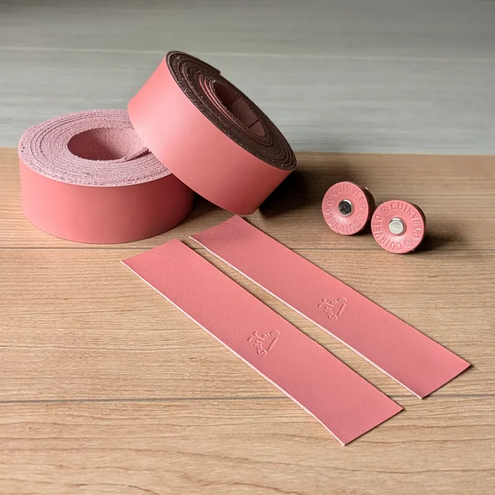 ----本革を使用した国産バーテープ ---- 自転車のドロップハンドル用のバーテープです。 手になめらかに馴染む柔らかな革が、長時間のライドでも手首の疲労を軽減します。 厚みは1.6~1.8と従来品より厚めなため、クッション性に優れています。 ----こだわりのエンドキャップ ---- 本革を重ねて作られたエンドキャップには「CuieVelo」の刻印。 フィニッシュテープ フィニッシュテープにも刻印があり、こだわりぬかれた一品となっております。 ----CuirVeloオリジナルレザー---- 兵庫県姫路市のタンナーより別注のオリジナルレザーを使用。