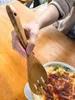 チーク材のサーバーフォークです!マカロニやサラダ・・・なんでも取り分けに大活躍です^^ 安心の天然素材で作られた丈夫な食器になります! チーク材は古来より、高級家具や、ヨットなどの船舶の甲板材などで重宝された、水にも強く、耐久性の高い素材になります。チーク材のカトラリーは、温かみがあり、シンプルなデザインですので、どんなところでも馴染んでくれる商品です。持ち手が細く、手にフィットしますので持ちやすく、すくいやすいです!チーク材の木目がほどよく映えて、とても可愛らしいです♪天然の木材の温かみたっぷりで、使い心地や手触り、使い込んだ手への馴染みも良く、末永くご愛用して頂けます。ウレタンやラッカー塗装はしておらず、オリーブオイル仕上げになっておりますので、体にも優しく、自然の艶で高級感があります。量産品とは違う、手にして頂いた時の手触りの違いにご満足いただけると思います!チーク材の独特な香りがする場合がございますが、洗浄して頂き、自然乾燥していただければ徐々に無くなります。サイズ:長さ26cm×幅7cm 材質:チーク材 ※フルハンドメイドでの製作品となり、また天然素材を使用しておりますので多少の色やサイズに誤差が生じる事もございます。またPCディスプレイの性質上、実際の色と異なって見える場合がございますので予めご了承ください。