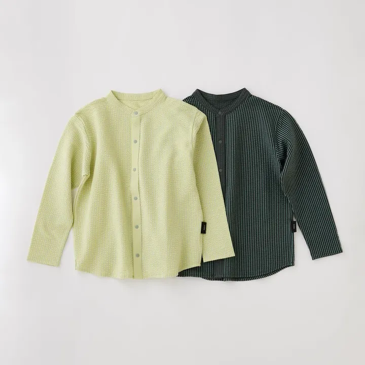 ストレッチ性のあるサッカー素材。 夏を快適に過ごせる、さらりとしたドライタッチな着心地です。 お洗濯を繰り返しても安定性があり、吸水速乾性がある素材のため、すぐに乾くのもうれしいポイントです。 カラーはイエロー、チャコールグレーの2色展開。 一枚でも、羽織としても着まわせるため、長い間楽しんでいただけるアイテムです。 ・・・・・・・・・・・・・・・・・・・・・・・・・・・・・・・・・・・・・・ さらりと快適、ストレスフリーなサッカー素材 肌にあたる部分はコットンで、アクセントカラーでストライプ模様を表現している部分がポリエステル。 コットンは快適な肌ざわりと、汗を吸う役割。 ポリエステルは軽さと速乾性の役割を担ったストレスフリーな素材です。 ストレッチ性がありシワになりにくいため、扱いやすいのも嬉しいポイント。