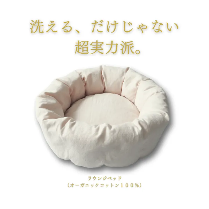 ペットのためのラウンジベッド オーガニックコットン100% 洗濯可能 生成り色 高級羽毛 丸洗い フリーサイズ