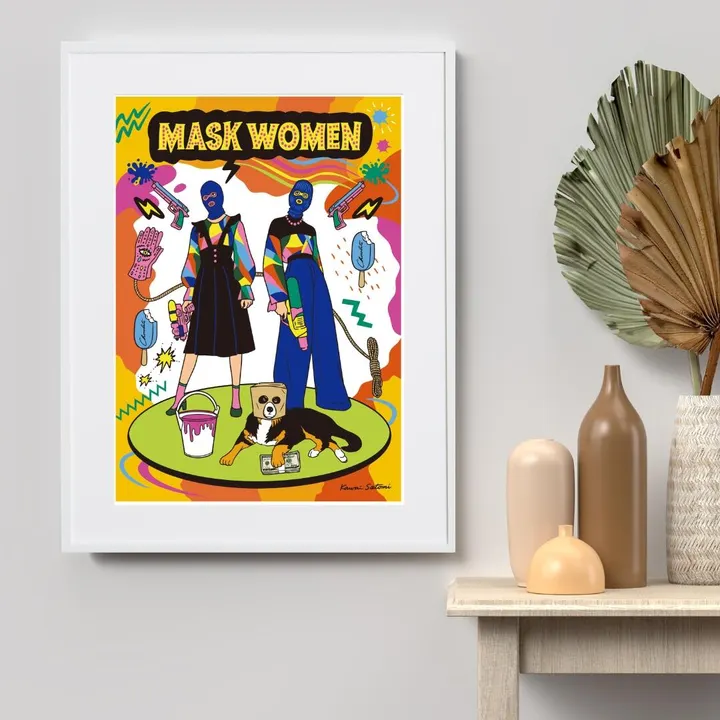 アーティスト -PROFILE- Satomi Kawai(サトミ カワイ) イラストレーター&グラフィックデザイナー 女子美術大学デザイン学科卒業 デザイン会社での勤務経て2015年フリーランスに。 ちょっとシュールで小洒落たイラストを描いています。 【作品について】 覆面の水鉄砲で強盗ごっこをしている人と犬です。 作品名:MASK WOMEN 手法:イラスト、デジタル ペーパー:高品質半光沢紙 マットカラー:白 マット*:DXホワイト芯 100%バージンパルプ/PH7・中性紙(2mm厚) ※全てのアートにマットがつきます フレームカラー:黒、白、無垢(3種類から選択) ※マット付のため通常とはフレームサイズが異なる規格となります。 【マット*とは?】 アートポスターの周りに挟んだ厚紙の事。 マットを使わない時に比べ余白により広がりが生まれ、作品の新たな一面を引き出せ作品の見栄えがグッと良くなります。また、額縁のガラス面と作品が直接触れたままにしておくと、くっついて作品を傷つけることがあります。マットを使用することでガラスと作品の間に空間ができ、作品を保護することができます。ブランドコンセプトにより全てのアートにマットがつきます。 ー ファッションのようにアートを ー 私達が掲げるコンセプトです! 毎日着替えるファッションの様に、アートも気軽に飾り変えて欲しい... 一旦飾り終えたアートにも光を当ててほしい... ポスター単体、またはリピートで中身だけのポスターを購入された方に"専用のハンガー"をセットでお届け。 「今までに無い!新しいアートの飾り方を提案」 飾る事がなくなった前のアートをハンガーにかけて洋服と一緒にかけてもらう。 その日の気分や、モチベーションですぐに取り換えられる様に。 もちろん、魅せる収納としても今までにないおすすめの飾り方です。