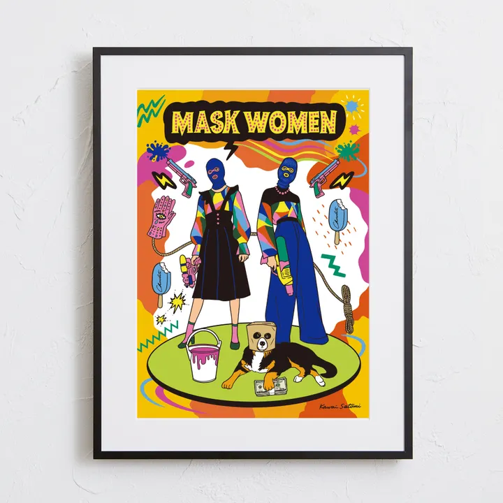 アーティスト -PROFILE- Satomi Kawai(サトミ カワイ) イラストレーター&グラフィックデザイナー 女子美術大学デザイン学科卒業 デザイン会社での勤務経て2015年フリーランスに。 ちょっとシュールで小洒落たイラストを描いています。 【作品について】 覆面の水鉄砲で強盗ごっこをしている人と犬です。 作品名:MASK WOMEN 手法:イラスト、デジタル ペーパー:高品質半光沢紙 マットカラー:白 マット*:DXホワイト芯 100%バージンパルプ/PH7・中性紙(2mm厚) ※全てのアートにマットがつきます フレームカラー:黒、白、無垢(3種類から選択) ※マット付のため通常とはフレームサイズが異なる規格となります。 【マット*とは?】 アートポスターの周りに挟んだ厚紙の事。 マットを使わない時に比べ余白により広がりが生まれ、作品の新たな一面を引き出せ作品の見栄えがグッと良くなります。また、額縁のガラス面と作品が直接触れたままにしておくと、くっついて作品を傷つけることがあります。マットを使用することでガラスと作品の間に空間ができ、作品を保護することができます。ブランドコンセプトにより全てのアートにマットがつきます。 ー ファッションのようにアートを ー 私達が掲げるコンセプトです! 毎日着替えるファッションの様に、アートも気軽に飾り変えて欲しい... 一旦飾り終えたアートにも光を当ててほしい... ポスター単体、またはリピートで中身だけのポスターを購入された方に"専用のハンガー"をセットでお届け。 「今までに無い!新しいアートの飾り方を提案」 飾る事がなくなった前のアートをハンガーにかけて洋服と一緒にかけてもらう。 その日の気分や、モチベーションですぐに取り換えられる様に。 もちろん、魅せる収納としても今までにないおすすめの飾り方です。