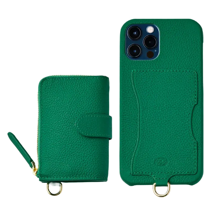 素材は、デミウルーボ の代名詞でもあるフランス産カウレザー。 L字ジップを開けると真ん中にコインスペースがあり、マチが広めで視認性と利便性を兼ね備えています。 コインスペースの両端には、カードや領収書などをドバッと入れることができるポケットがついており、 お札は三つ折り、もしくは4つ折りでしっかり収納できます。カスタムハードケースに装着できるようになっており、 シーンに合わせてスマホと財布をセットで持ち歩くことができます。 装着した状態でもそのままジップが開けられるようになっているので、取り外すことなく使用可能です。 単体としてももちろん、カスタムハードケースとセットでぜひご利用ください。 シンプルなデザインなので男女、年齢関係なくお使いいただけます。プレゼントにも最適です。 <カスタムハードケース> フランス産レザーを使った高級感あふれるレザーハードケース。 カード類を横から入れることができ、 ストラップでぶら下げても落ちないようにサイズ設計されています。 通常のクレジットカードなどは1枚、薄いカードは2枚入れることが可能です。
