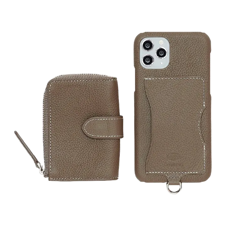 素材は、デミウルーボ の代名詞でもあるフランス産カウレザー。 L字ジップを開けると真ん中にコインスペースがあり、マチが広めで視認性と利便性を兼ね備えています。 コインスペースの両端には、カードや領収書などをドバッと入れることができるポケットがついており、 お札は三つ折り、もしくは4つ折りでしっかり収納できます。カスタムハードケースに装着できるようになっており、 シーンに合わせてスマホと財布をセットで持ち歩くことができます。 装着した状態でもそのままジップが開けられるようになっているので、取り外すことなく使用可能です。 単体としてももちろん、カスタムハードケースとセットでぜひご利用ください。 シンプルなデザインなので男女、年齢関係なくお使いいただけます。プレゼントにも最適です。 <カスタムハードケース> フランス産レザーを使った高級感あふれるレザーハードケース。 カード類を横から入れることができ、 ストラップでぶら下げても落ちないようにサイズ設計されています。 通常のクレジットカードなどは1枚、薄いカードは2枚入れることが可能です。