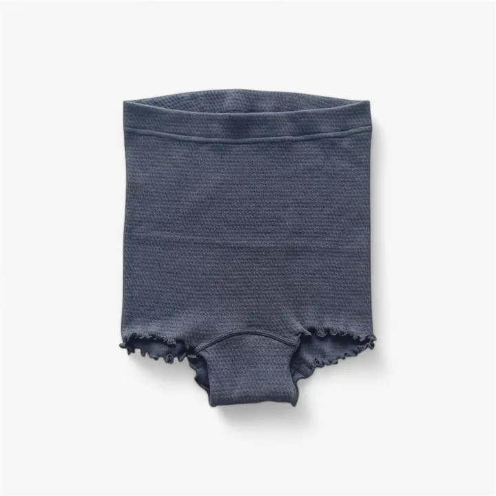 体が自然にリラックス 日常に寄り添うエアリーな心地よさ 腹巻づくりの観点から考えられた、からだ想いのフェムケアショーツです。 おへそのあたりまですっぽり包み込む長さで、おなかを優しくあたためるハイライズタイプです。脇に縫い目のない筒状に編まれた仕様で、軽やかな着けごこち。 ウエスト・脚口にはゴムを使用せず、生地端にミシンをかけただけのメロウ縫いにすることで、心地よく体のめぐりをサポート。鼠径(そけい)部にも負担のないやわらかなデザインに仕上げました。 クロッチ部分は両サイドを縫い付けていない仕様で、布ライナーなども折り込んで付けやすくなっています。羽つきナプキンにも対応。(防水布は使用しておりませんので、生理期間中にご着用の場合は軽い日がおすすめです。)本体生地と同素材の生地をクロッチにも使用しているので通気性抜群。 お洋服にもひびきにくく、汗ばむ季節も、肌がカサついたり敏感になる季節、気持ちがデリケートな時にも、さらっとノンストレスで着⽤いただけます。 マタニティから産後にもご使用いただけます。(妊活中、妊娠初期〜中期、産後におすすめ) 【生地タイプ】 薄手・ゆったりフィット・春夏向き 【スフレワッフル生地】 スイーツのスフレのように、空気をたっぷりと含んだふわふわのワッフル生地。 繊細で薄くシアーな風合いは、細い40番手の糸に仕上げたエンバランス糸を、日本に数台しかない貴重な編み機でゆっくりと編み上げ実現。 身も心もそっと触れるように包み込み、やわらかく軽やかな肌ごこちが特徴です。 【特殊繊維エンバランス糸】 心地よい温かさが持続する “ 遠赤外線効果 ” と 、汗や加齢臭・アンモニア臭などの嫌なニオイをケアする “ 消臭効果 ” のある「エンバランス糸」を使用しています。 【安心の日本製】 1.自社オリジナル企画・パターン 新しい腹巻きのかたちをモットーに、日常に馴染む腹巻を素材、カラーなど1から企画。また、生地の特性を最大限に活かし“着心地の良さ”に細部までこだわり抜いた自社オリジナルパターンを使用。 2.自社縫製工場にて縫製 生地の特性を最大限に活かした縫製。着用したときの違和感が極力ないようにする、高度な縫製技術を持つ縫製職人によって1枚1枚丁寧に、大切に縫いあげられています。