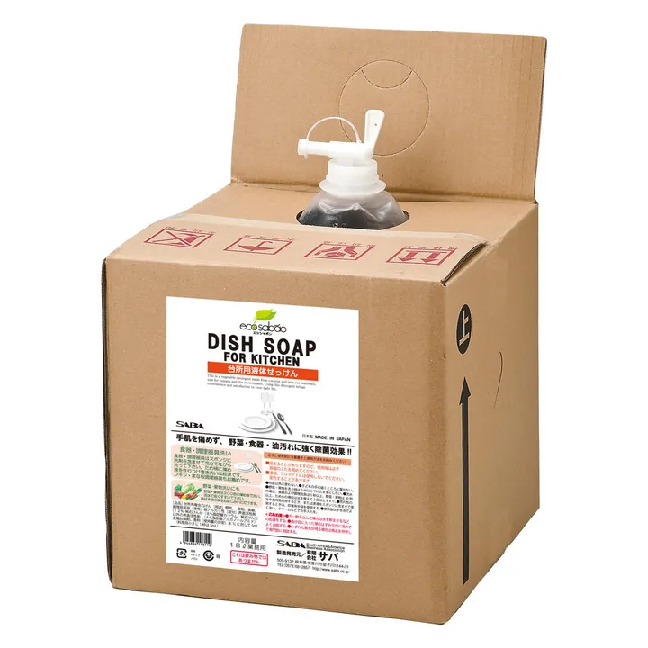 手肌を傷めず、野菜・食器・油汚れに強い!植物由来原料で作った台所用液体せっけんです。泡立ち豊かで泡切れもよく安全・安心・環境を重視しています。 ●洗浄成分100%が植物原料(ヤシ油・パーム・米ぬか・松由来.他)で造った植物洗剤です。 ●泡立ちが豊かで泡切れも良く、コロイド微粒子で汚れを落とします。 ●各種分析試験を行っていますので、安全性を重視し安心してお使いいただけます。 ●石油系原料は使用していませんので環境にも配慮しています。 公共関係・保育園・幼稚園への納入実績あり ●内容量 18リットル ●品名 台所用複合石けん●用途 野菜、果物、食器、調理用具用●液性 弱アルカリ性 ●成分界面活性剤 (12%)純石けん分(8%脂肪酸カリウム)純石けん分以外の界面活性剤 (4%脂肪酸アルカノールアミド)、安定化剤、香料 ●使用量の目安 水1Lに対して5mL(料理用小さじ1杯は5mL) ※当製品で、店頭などで量り売りは不可とさせていただきます。
