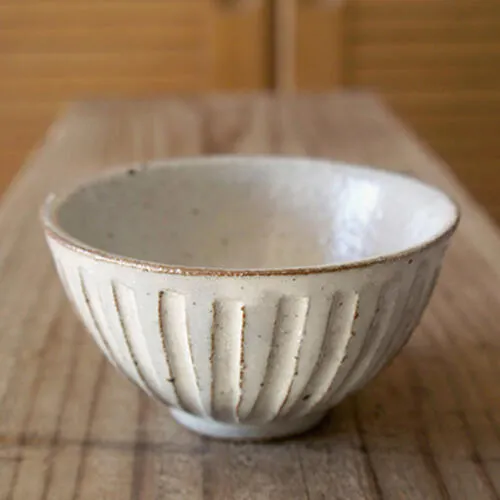 土ものの持つほっこりと優しい雰囲気、粉引きならではの繊細な色合いと同時に大胆な削ぎ目の豪胆さもうかがえます。