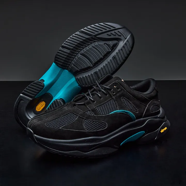 都会の魅力と動きの軽快さを体現する「UrbanGlide」は、クラシックなスポーツカーと90年代のハイテクスニーカーからのインスピレーションを受け、洗練された外観と先進的なデザインで都市のダイナミズムを映し出します。 ファーストカラーには極楽鳥として知られるカタカケフウチョウからインスパイアされたカラーパレットを採用。アッパーには黒のヌバックレザーを使用し、アクセントにはターコイズブルーが巧みに施され、都市の中で一際輝く存在感を放つデザインが完成しました。 Vibramソールの採用により、高いグリップ性と耐久性が実現できます。都市の多様な環境で快適に移動できる自信をもたらします。