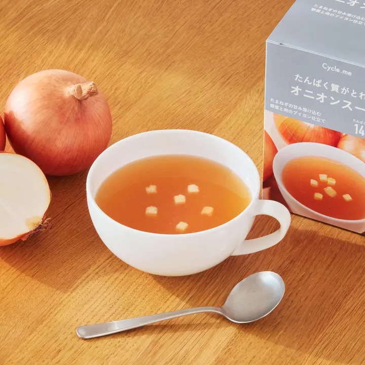 \ たんぱく質が10g以上とれて、本格的/ 素材とレシピに本気の、たんぱく質がとれるごちそうスープ。 ▼Line up ・オニオンスープ:たまねぎの甘み溶け込む。野菜と肉のブイヨン仕立て ・トマトポタージュ:旨み際立つ濃厚トマト。ほんのり香るチェダーチーズ ▼Points 《1》本格的な味わいで、1日不足分*のたんぱく質が補える。 「おいしいから、毎日続けたくなる一杯」を実現するために、味わいに徹底的にこだわりました。 *目標量下限値と平均摂取量の差(例 女性30~39歳の場合、4.2g)。目標量:日本人の食事摂取基準(2025年版)、身体活動レベルふつう(非妊婦、非授乳婦) 平均摂取量:令和5年国民健康・栄養調査 《2》1杯あたり100kcal以下で、小腹が空いた時にぴったり 更に脂質も2g以下なので、食事のプラスワンとしてだけではなく間食としてもおすすめです。 《3》いつでも手軽に、インナーケアができる 個包装型、さらに粉末スープ形態なので手軽に作って食べることができます。(熱湯130mlで溶かしてお召し上がりください) 特にたんぱく質が不足しがちな朝食と一緒にとっていただくのがおすすめです。 ごちそうと、栄養。 いそがしい日も。余裕のある日も。 おいしく手軽に、ほしい栄養を補えたら。 素材とレシピに本気の、たんぱく質がとれるごちそうスープ。 私たちのカラダに欠かせない たんぱく質が、たっぷり10g以上もとれる。 しかも、この食べ応えで100kcal以下。 お湯を注ぐだけで、どこでもすぐに楽しめる。 おいしさも栄養も、妥協しない一杯です。 本品に含まれるアレルゲン: トマトポタージュ/小麦・乳成分・大豆・鶏肉・ゼラチン オニオンスープ/小麦・乳成分・牛肉・大豆・鶏肉・ゼラチン
