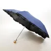 UVカット&完全遮光 遮熱 裾フリルレース 晴雨兼用3段折りたたみ傘 27518 ネイビー