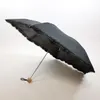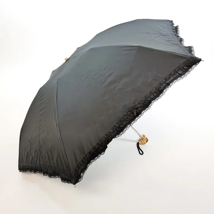 UVカット&完全遮光 遮熱 裾フリルレース 晴雨兼用3段折りたたみ傘 27518 ブラック