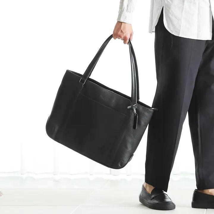 【12スペースでラクに整理整頓】本革 トートバッグ「オンでもオフでも使える」自立設計 / RT1 ロイヤルブラック