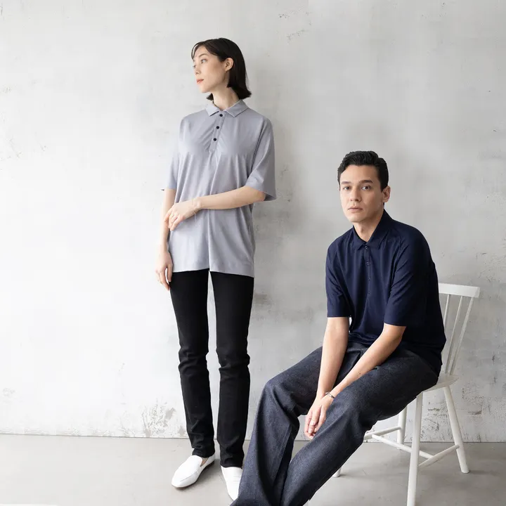 【発送について】在庫商品につきましては1週間以内に発送いたします。在庫のない商品は生産いたしますので1~2ヶ月のお時間をいただきます。具体的な日数は個別に連絡いたします。 ◆商品の特徴 袖の形状が腕を動かしやすくストレスフリーでフレキシブルなデザインを表現し、ウール素材で快適さも追求したポロシャツ。 一般的なポロシャツよりも腕や体の動きに柔軟に対応してくれる革新的なデザインです。特殊な形状により、通常のポロシャツよりも腕を動かしやすく、自由自在な動きが可能になります。さらに、独自の縫製技術により、ストレスのない着心地を実現し、快適な時間を過ごすことができます。 落ち感のある素材と縫い目が少ない仕立てにより、よく体に馴染むので着用時に軽るく感じ、きれいなシルエットがでます。 ○ジムやジョギングなど、体を動かし健康に気を遣う人が増えている昨今、様々な機能素材でウェアが氾濫しています。そんな中、自然由来の機能を持つウール素材を使い、肌にも優しく汗冷えなどもない、ストレスを軽減できるウェアをつくりたいという思いから誕生しました。 ○ヨガ、ジム、ゴルフなどで体を動かすことの好きな方に今までとは違う感覚のウェアを試していただきたい。もちろん、日常着としてもカジュアルなスタイリングにおすすめです。襟付きなのでビジネス向けにも使えます。 ○運動するときだけでなく、ウールには、水をはじくや燃えにくいなどの性質もありますので、キャンプや釣りなどのアウトドアにも効力を発揮してくれます。 ◆ウールの特長 『ファインメリノウール』は肌触りがなめらかで表面に光沢がある素材で、『カジュアルさ』『高級感』『爽やかさ』を演出してくれるため幅広いシーンで着用できます。さらに、断熱性、保温性、吸放湿性に優れ普段のコーディネートでも快適に。抗菌防臭性が高く、汗のにおいを抑える効果があります。 ウールは速乾性が高く、天然の吸放湿性機能があるため汗をかいてもベタつかずサラッと着れて汗冷えしないため、アウトドアシーンだけでなく日常生活やお仕事にも汗を気にせず過ごすことができる優れたアイテムとなっております。 臭いや汗が気にならないため、キャンプや登山の場で着替えがいらずそのまま寝ることもできます。 ・天然の温度調節機能 ・断熱性、保湿性、吸放湿性を持つ天然素材 ・天然の消臭機能 ・良質の羊毛の上質な光沢 ・汗のベタツキが少なく爽やか ・洗濯後の乾きが早い ・ご自宅での洗濯可能(※裏返してネット洗い) [素材]ウール100% [カラー]グレー・レッド・ダークネイビー [サイズ] S 着丈65㎝ 身巾 47㎝ 裄丈44㎝ M 着丈68㎝ 身巾 50㎝ 裄丈46㎝ L 着丈71㎝ 身巾53㎝ 裄丈48㎝ LL 着丈74㎝ 身巾 56㎝ 裄丈50㎝ *着丈・バストは±1㎝程の誤差が生じる場合があります。 【モデル着用サイズ】 男性 186㎝/ネイビー LLサイズ 女性 170㎝/グレー Lサイズ 洗濯の際は裏返して洗濯ネットに入れて洗濯機(弱設定)で洗濯可能です。 乾燥機の使用はお避けください。 濡れた状態で長時間放置しますと縮みの原因となりますので、洗濯・脱水後すぐに干すようにしてください。