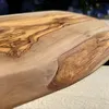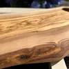 サイズ:約51×16~17.5×厚み2cm 重さ1408g きれいに伸びた姿が美しい *人気のオリーブの木の超かっこいいカッティングボードシリーズです。北アフリカの雨があまり降らない大地で400年以上生き抜いたオリーブの木の圧倒的な木目が特徴「大自然のアート」 *オリーブの木 特有の滑らかな形、木目の表情は大自然の恵みの力をそのまま残した生命力溢れる絶品です。これぞ北アフリカの大自然アート、長い年月の間、厳しい自然の中を何百年も生き抜き育った結果が表れています。この作品には圧倒的な「見ごたえ」があります。目にするたびに喜びと元気が湧き出ることでしょう!!北アフリカではオリーブの木は1000年近くも生きる不死身「聖なる木」とされます。 *400年前後の古木を使っているためモノによっては古木ならではの自然な亀裂がございます。 *キッチンで使ったり、テーブルウェアとして使ったり、はたまたインテリアとしてその存在感を発揮させたりと楽しみ方は無限大。程よい大きさは、卓上でパンやチーズ、オードブルやフルーツを盛り付けるのにも最適です。生ハムなどの盛り付けにも。そのままお皿としてご利用いただくこともできます。 *食卓以外でもアクセサリーや陶器などディスプレイにも素材力を発揮し、お料理だけでなくさまざまな小物のステージを演出してくれるでしょう。 *地中海の恵みをたっぷり浴びたオリーブの木は、ゆっくりと成長するので大きな木になるには何百年とかかります。その為、木の密度は高くなり、硬く傷つきにくくなります。色が変わってきたらオリーブオイルを塗ってください。長く使っていただける一品です。 *写真で細かくご案内していますが、400年以上の古木という材質上、ご案内するボードは一点一点、異なる木目や節があり、色も各々違います。 また、細かい傷や表面の微妙な凹凸、磨いた跡や虫食いの跡などがある場合もございます。これらは不良品扱いとはなりませんので、予めご理解の上お買い求めください。 ※商品は1点もので、複数サイトに掲載しております。お取引が成立となりましても、先に他のサイトで売れているということもあり、その場合は注文キャンセルとさせていただく場合もまれにございますので、予めご了承くださいませ。