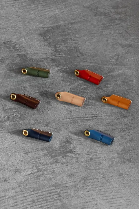 栃木レザーを使用したペンホルダーです。 縫いは温かみのあるハンドステッチ、側面は磨きを施し、1つ1つ丁寧に仕上げました。 金具がついており、ストラップやナスカンをつけることができます。 ※穴の直径は7mmです。 取り付ける金具についてご心配な方はお気軽にお問い合わせください。 当店の別売のストラップにつけることが可能です。 同色でお作りしているので色が揃えられます! 長さ別でそれぞれご用意しておりますので、カバンに付けたり、ネックストラップとして使用したり、用途でお選びいただけます。 ※こちらのページはペンホルダー単品での販売です。 Material:Oil leather、真鍮 Size:H53 × W25mm ペン周囲 42mm程度まで収納可能 3色ボールペンなどは入りませんのでご注意ください。 ※天然皮革を使用しているため、記載の数値と多少の誤差が生じることがあります。 【注意事項】 ・商品のお色はPC環境によって多少色合い、見え方など違ってまいりますのでご了承ください。 ・部位によっては牛が元々持っていたしわや小さな傷がありますが、自然の風合いとしてお楽しみください。 ・職人が一つ一つ手作業で製作していますので革の表情は少々異なる場合があります。