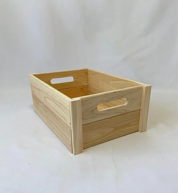 安心安全の国産ひのきを使用したA4サイズのボックスになります。 無塗装の天然ひのきを使用しています。ひのきのいい香りがします。 サイズ:外寸 約たて350×よこ245×たかさ140㎜     内寸 約たて310×よこ225×たかさ120㎜ 陳列用ボックス・小物収納などアイデア次第でいろいろと用途が広がります。 *1木材の乾燥による収縮で板と板の間にすき間ができることがあります。 *2天然ひのき使用のためヤニが出てくる場合があります。これは木本来の良さであり、木が健康な証拠です。雑菌の繁殖を抑え、防腐性を高めるものになります。ヤニが気になる場合は、お湯やアルコールでふき取ってください。 *3天然素材のため、反りや小ヒビが発生する場合があります。 *4カット時の小さなささくれが残っている場合があります。ささくれが気になる場合は紙ヤスリでこするときれいになります。 *5無塗装のため変色します。(日に当たると変色が早いです。)