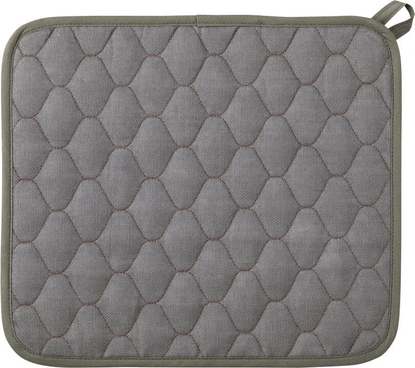 かや生地に中綿を挟み込んだパイル地を使用した水切りマット。 水切りカゴを置きたくないときにも、場所を取らず使いたい時にサッと取り出し、使用後はループでひっかけて乾かすことができます。
