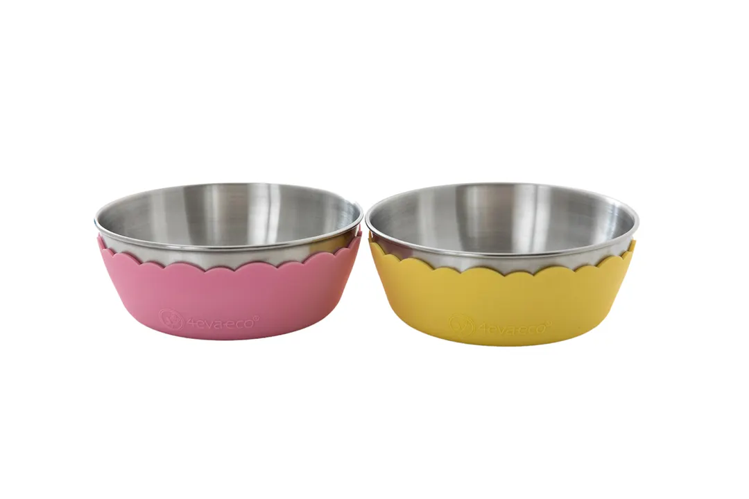 パステル ミニボウル 4点セット(ステンレスボウルx2、シリコンボウルx2) 容量400ml ピンク&イエロー