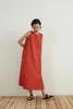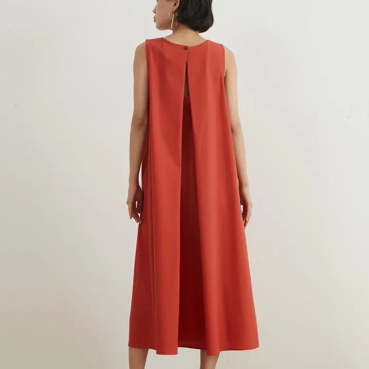 KNNO322/368リネンミックスAライン背中開きワンピース RUST/L