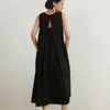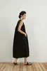 KNNO322/368リネンミックスAライン背中開きワンピース BLACK/L
