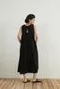 KNNO322/368リネンミックスAライン背中開きワンピース BLACK/M