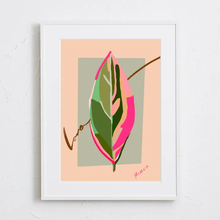 【現代アートポスター】ボタニカル 観葉植物 ナチュラル LOVE ポップイラスト A4(S) フレームセット:白 29.4×38.4cm