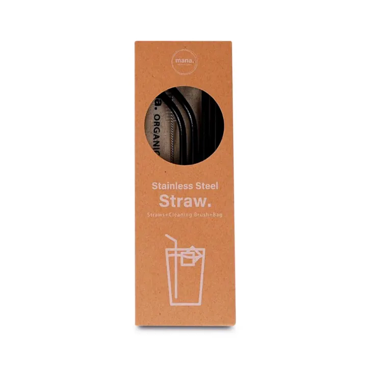 【通常サイズ/専用ブラシ&ケース付】ステンレス製ストロー <ブラック>