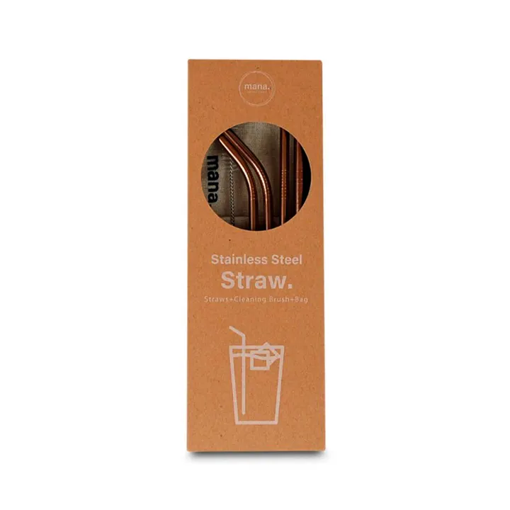 【通常サイズ/専用ブラシ&ケース付】ステンレス製ストロー <ピンクゴールド>