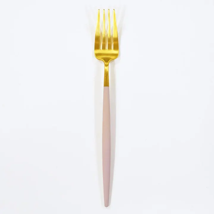無駄のないシンプルでスタイリッシュなフォルムが魅力の、GOA(ゴア)シリーズ・テーブルフォークです。洋食器から和食器まで、テーブルウェアを選ばずお使いいただけます。樹脂製の柄は軽くて手になじみやすく、使いやすいデザインです。優しいピンク色の柄と美しいゴールドでかわいらしく上品な雰囲気を演出します。