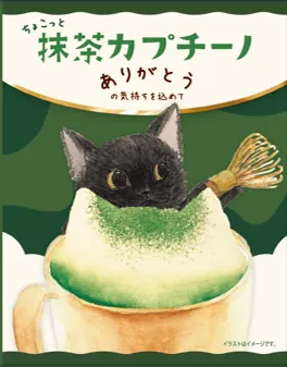 「カプチーノ」に宇治抹茶をブレンド。お湯を注ぐだけで簡単に出来る、個包装タイプで使いやすいインスタントにしました。 日頃伝えられない感謝の気持ちをカワイイネコのバリスタイラストと共に「ありがとうの気持ちを込めてのメッセージ」が添えられており、贈り物やギフトやノベルティーなどにしやすい商品となっております。