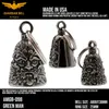 アメリカ製ガーディアンベル社製ガーディアンベルです。 MADE IN USA アメリカ製 交通安全 魔除け 御守り ガーディアンベル アメリカのライダーの間には、事故や、転倒の原因は「道路にひそむ悪魔」によるいたずらだという伝説があります。悪魔は走る者に悪戯やトラブルを運んできます。このベルは美しい音色で悪魔たちを追い払うと言われ愛されています。そんな悪魔のいたずらを防ぎ、御守りとなるのが、守護者のベルという意味を持つガーディアンベル。 日本でも鈴の音(ね)は神道では魔除けの音と言われています。ピューター製の鈴でいい音色でガーディアンベルはデザインも様々あります。 またガーディアンベルにまつわる伝説として、プレゼントとして送られたベルの効果は、自分で手に入れたものの2倍になると言われています。 それゆえに彼氏・彼女・友達・家族へのプレゼントとしての人気も非常に高まっています。 シルバーアクセサリーのようにおしゃれに装着できて素敵な音色を奏でるガーディアンベル。 バイカー以外にも自転車や旅・交通安全のお守りとしてお使いいただけます。 カバン・ランドセル・キーホルダー・ペットの首輪等に付けてお使いください!! ※タイラップ等でバイクのフレームにも簡単に取り付けできます。 アメリカンモデルだけではなく、旧車ファン、レプリカライダーまで、さらにバイクだけでなく、自転車や車にもピッタリな御守りとなっています。 アクセサリーとしても人気で、アイディア次第で車体だけでなく、キーホルダーや鞄など、どこにでも付けておしゃれに楽しめます。