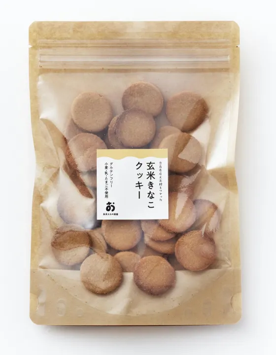 きな粉の香りが香ばしい!大人の女性人気のクッキーです! グルテンフリーでの「小麦粉・卵・乳製品・白砂糖なしの」7大アレルゲン不使用クッキーができました。 玄米粉だからきな粉の香りが香ばしく、豆乳も使ったホロホロな食感に仕上がっています。グルテンフリーなのに美味しいね、とお声をいただいています。 みんなで集まる場で「アレルギーの方だけ別々のおやつ」にさせず「みんなで同じものを食べる」ことができます。子供は楽しく、お母さんは安心して食べさせたいですよね。 小麦粉、乳、卵、白砂糖不使用なので、ヴィーガンスイーツを探している方にも食べていただいています === ●お客様の声 きな粉の風味がとても豊かで、シンプルに美味しいです。重たさがないので次々と手が出て止まらなくなるので、あっという間に食べ切ってしまいました。 昔米粉クッキーを食べた時はあまりいい印象ではなかったのですが、これはむしろ普通の小麦粉クッキーより好きかもしれません。 ちょっと高いかなと感じましたが、これだけたくさん入っているので大満足でした。 ●お客様の声 香ばしいきな粉クッキー、安心な素材であるうえに、美味しくて。 今回も娘と、やっぱり美味しいね〜と食べてます。 送料がお安いのもありがたいです。 ●お客様の声 甘さ控え目で、きな粉の風味が感じられて、後をひく美味しさですね。 グルテンフリーも嬉しいです。 ●お客様の声  先日はたくさんのお菓子をお送りいただきありがとうございました。 ・使用している食材がシンプルで、マーガリンといった油脂取りすぎの心配もないので、安心して与えることができますね ・子供の持ちやすい・食べやすい大きさなので嬉しい、カバンの中で割れてしまうことも心配しなくて良いので◎ ・味はシンプルで素朴な素材の味。安心して食べさせられる。 ・クッキーの堅さも全く問題なく、食べていました。 □原材料名: 玄米粉(玄米(奈良県産ヒノヒカリ金鵄米100%))、きな粉、きび糖、豆乳、米油。 (※本品製造工場では、小麦、乳、卵を含む製品を生産しています。) □内容量:【40枚入り】 簡易包装 □賞味期限:製造日より210日 □アレルギー表示対象品目:7大アレルゲンなし □保存方法:直射日光・高温多湿を避けて。保存してください。 □販売者 :奈良おおの農園 大野收一郎 □栄養成分表示 1袋40枚当たり エネルギー 842kcal タンパク質 19.5g 脂質 42.7g 炭水化物 94.8g 食塩相当量 0.1g (このお菓子は、福祉施設の方々に、私の考えをご理解共感いただき 就労支援利用者様にお一人お一人の得意を活かして優しく丁寧に製造していただいております。 本事業は農福連携のひとつのカタチになっております。)