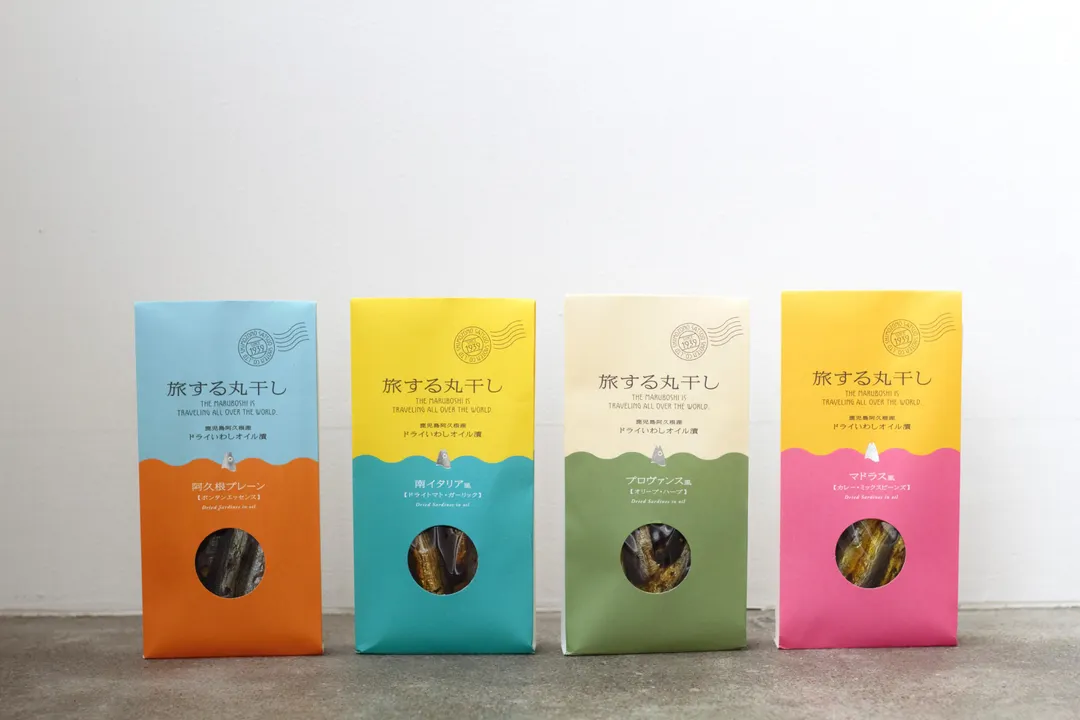 旅する丸干しスタンドパックを4種類集めたお試しセットです。 【南イタリア風】【阿久根プレーン】【プロヴァンス風】【マドラス風】とまるで世界を旅しているようなフレーバーの丸干しのオイル漬け。 丸干しの新しい形をお試しください。