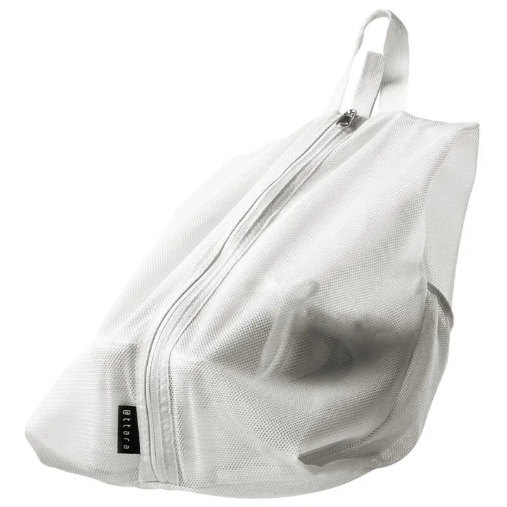 広めのマチがあるので、 ブーツや厚底靴まですっぽり入り、シューズ以外にも 水筒やスポーツグッズなどもすっきり収納できます。 半透明の素材で、中身が一目で分かりやすいのがポイント。 さらに撥水加工が施されているので、 雨の日や湿気の多い場所でも安心してお使いいただけます。