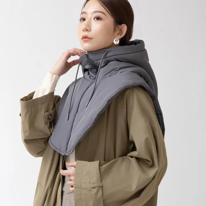 フードウォーマー┃首元のレイヤードスタイルにも活躍 光沢が上品な中綿入りフードウォーマー DG(ダークグレー)