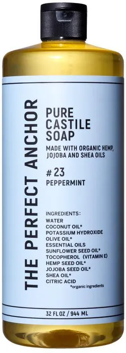 【ご注文の前にご確認ください】 ☑「ザ・パーフェクトアンカー944ml」は12本単位でのみご注文いただけます。  (例:12本、24本、36本 など) ☑「ザ・パーフェクトアンカー944ml」は同じ香りで12本、又は全8種類の香りからアソートでもご注文いただけます。  (例:ブラックスプルースブレンドx6本、レモングラス&オレンジx4本、ラベンダーx2本 など) ☑アソートでご注文の際は、各香りの合計本数が12本単位になっているかご確認ください。 ☑1本、2本、、、13本、14本、、、などの本数では承ることができません。  その際はご注文をキャンセルさせていただきますのでご了承ください。 ---------------------------------------------------------------------------------------- 【商品説明】 顔も体も洗え、メイクも落とすオーガニックソープ。 100%天然・無添加で認定オーガニック。 日本人の肌に合うようにアレンジ済の、米国製カスチールソープです。 毛穴の黒ズミやメイクまで落とせるのにつっぱらず、うるおい美肌成分(ヘンプ油、ホホバ油、シア脂油)が顔も体も、透明感のあるスベスベ美肌へと導きます。 カスチールソープとは、中世ヨーロッパのカステリヤ王国で作られていた、植物オイルを主体とした石鹸。王侯貴族が愛用していたことで知られています。 ザ・パーフェクトアンカーに配合されているヤシ油、オリーブ果実油、ヒマワリ種子油、ヘンプ油、ホホバ油、シア脂油は、有機栽培による原料から抽出された100%オーガニックのオイルです。 合成の界面活性剤、保存料、着色料など合成添加物は一切不使用。 生分解されるので地球に優しく、動物実験も行っていません。 洗顔、クレンジング、ボディ洗浄…1 本ですべてにさっと使え、すっきりと洗い上げながらも、しっとり美肌へと導く石けん。香料のかわりに贅沢に配合されたアロマ精油が、やさしく包み込んでくれます。 香りは、合成香料ではなくエッセンシャルオイルだけを使用していますので、毎日の洗顔や入浴の時間が、特別なアロマセラピータイムにもなります。 フレグランスのタイプは全部で8種類(アンセンティッド香りなし)。 お好みの香りをお楽しみください。 【用法】 濡らした手やスポンジ、ネットに適量とり、泡立てて顔や体を洗ってください。