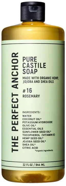 【ご注文の前にご確認ください】 ☑「ザ・パーフェクトアンカー944ml」は12本単位でのみご注文いただけます。  (例:12本、24本、36本 など) ☑「ザ・パーフェクトアンカー944ml」は同じ香りで12本、又は全8種類の香りからアソートでもご注文いただけます。  (例:ブラックスプルースブレンドx6本、レモングラス&オレンジx4本、ラベンダーx2本 など) ☑アソートでご注文の際は、各香りの合計本数が12本単位になっているかご確認ください。 ☑1本、2本、、、13本、14本、、、などの本数では承ることができません。  その際はご注文をキャンセルさせていただきますのでご了承ください。 ---------------------------------------------------------------------------------------- 【商品説明】 顔も体も洗え、メイクも落とすオーガニックソープ。 100%天然・無添加で認定オーガニック。 日本人の肌に合うようにアレンジ済の、米国製カスチールソープです。 毛穴の黒ズミやメイクまで落とせるのにつっぱらず、うるおい美肌成分(ヘンプ油、ホホバ油、シア脂油)が顔も体も、透明感のあるスベスベ美肌へと導きます。 カスチールソープとは、中世ヨーロッパのカステリヤ王国で作られていた、植物オイルを主体とした石鹸。王侯貴族が愛用していたことで知られています。 ザ・パーフェクトアンカーに配合されているヤシ油、オリーブ果実油、ヒマワリ種子油、ヘンプ油、ホホバ油、シア脂油は、有機栽培による原料から抽出された100%オーガニックのオイルです。 合成の界面活性剤、保存料、着色料など合成添加物は一切不使用。 生分解されるので地球に優しく、動物実験も行っていません。 洗顔、クレンジング、ボディ洗浄…1 本ですべてにさっと使え、すっきりと洗い上げながらも、しっとり美肌へと導く石けん。香料のかわりに贅沢に配合されたアロマ精油が、やさしく包み込んでくれます。 香りは、合成香料ではなくエッセンシャルオイルだけを使用していますので、毎日の洗顔や入浴の時間が、特別なアロマセラピータイムにもなります。 フレグランスのタイプは全部で8種類(アンセンティッド香りなし)。 お好みの香りをお楽しみください。 【用法】 濡らした手やスポンジ、ネットに適量とり、泡立てて顔や体を洗ってください。
