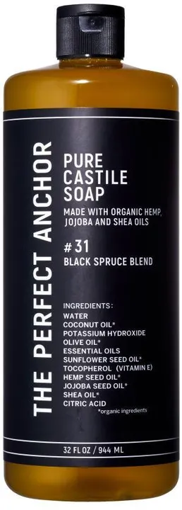 【ご注文の前にご確認ください】 ☑「ザ・パーフェクトアンカー944ml」は12本単位でのみご注文いただけます。  (例:12本、24本、36本 など) ☑「ザ・パーフェクトアンカー944ml」は同じ香りで12本、又は全8種類の香りからアソートでもご注文いただけます。  (例:ブラックスプルースブレンドx6本、レモングラス&オレンジx4本、ラベンダーx2本 など) ☑アソートでご注文の際は、各香りの合計本数が12本単位になっているかご確認ください。 ☑1本、2本、、、13本、14本、、、などの本数では承ることができません。  その際はご注文をキャンセルさせていただきますのでご了承ください。 ---------------------------------------------------------------------------------------- 【商品説明】 顔も体も洗え、メイクも落とすオーガニックソープ。 100%天然・無添加で認定オーガニック。 日本人の肌に合うようにアレンジ済の、米国製カスチールソープです。 毛穴の黒ズミやメイクまで落とせるのにつっぱらず、うるおい美肌成分(ヘンプ油、ホホバ油、シア脂油)が顔も体も、透明感のあるスベスベ美肌へと導きます。 カスチールソープとは、中世ヨーロッパのカステリヤ王国で作られていた、植物オイルを主体とした石鹸。王侯貴族が愛用していたことで知られています。 ザ・パーフェクトアンカーに配合されているヤシ油、オリーブ果実油、ヒマワリ種子油、ヘンプ油、ホホバ油、シア脂油は、有機栽培による原料から抽出された100%オーガニックのオイルです。 合成の界面活性剤、保存料、着色料など合成添加物は一切不使用。 生分解されるので地球に優しく、動物実験も行っていません。 洗顔、クレンジング、ボディ洗浄…1 本ですべてにさっと使え、すっきりと洗い上げながらも、しっとり美肌へと導く石けん。香料のかわりに贅沢に配合されたアロマ精油が、やさしく包み込んでくれます。 香りは、合成香料ではなくエッセンシャルオイルだけを使用していますので、毎日の洗顔や入浴の時間が、特別なアロマセラピータイムにもなります。 フレグランスのタイプは全部で8種類(アンセンティッド香りなし)。 お好みの香りをお楽しみください。 【用法】 濡らした手やスポンジ、ネットに適量とり、泡立てて顔や体を洗ってください。