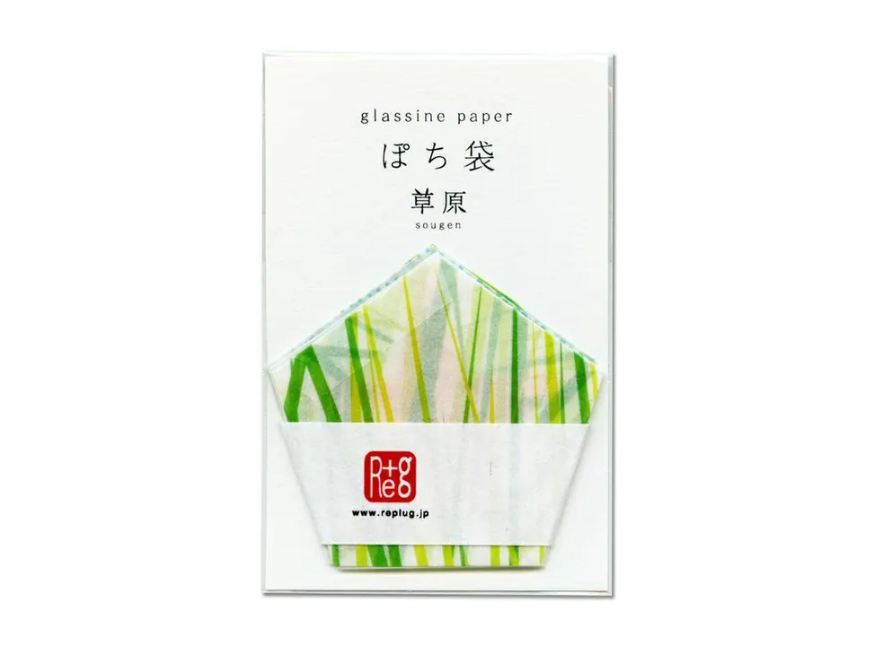 やわらかな質感に「心遣い」を包み込むぽち袋。 紙風船や本のカバーでなじみ深い、半透明の「グラシン紙」を使用したぽち袋です。 この紙はリプラグでカレンダー作成した時にできた紙を再利用(※アップサイクル)し、 新しいカタチに生まれ変わらせました。 最後まで大好きな紙を大事に使いたいという思いで作ったぽち袋。 あなたの「心遣い」をやわらかなグラシン紙に包んで、贈ってみませんか。