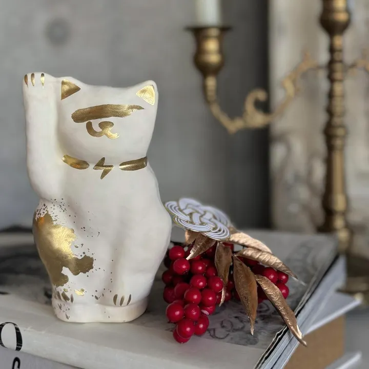 商品名 |招き猫『サンダーバディ』 重さ  |154g サイズ |W90mm × H140mm × D75mm カラー |コットンホワイト×ゴールド 生産国 |日本 商品詳細 ━━━━━━ だるまの名産地、群馬県高崎市の『高崎だるま』 そんな高崎だるまを100年余り作り続ける老舗名店『三代目だるま屋ましも』とPOPPYS HOUSEがコラボした招き猫(LUCKY CAT)が登場。 ナチュラルなコットンホワイトに上品なゴールドを纏った癒しモダンな招き猫。 『商売右肩上がり』の意味を持つ、右上がりの目線がトレードマークのサンダーバディは、職人さんが一つ一つ丁寧に絵付けして作り上げた一点物、オンリーワンの作品です。 また、皆様にとって毎日が最高の1日であって欲しいという想いから、サイドに『THE BEST DAY EVER』とメッセージを綴りました。 ご自身のお店に、ご自宅や寝室に、お友達やご家族へのプレゼントに… 様々なシーンをさりげなく彩り、福を招く、唯一無二の招き猫となっております。 日本製の品質の良さ、手作りの温かさを是非お確かめください。 きっとお気に召して頂けるはずです。 皆様にとって今日という1日が『THE BEST DAY EVER 』となりますように^.ˬ.^◞ 注意事項 ━━━━━━ 職人による手作りのため、絵付けや、文字入れ、スプラッシュ部分に個体差があります。 写真とは異なる場合がございます事をご了承ください。 寄付について ━━━━━━ どんな小さな声も聞き逃さない。世界中の助けを求めている全ての動物を救えるように売上の10%を寄付してます(˘ᵕ˘ )♡