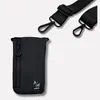 表面:高さ19㎝×横11㎝(内蓋ファスナー付き2段階構造) 背面:高さ19㎝×横11㎝ 背面ポケット:高さ17㎝×横11㎝ 背面蓋:高さ3㎝×横11㎝ 付属丸カラビナ: 外形3cm ストラップ:金具から金具までの最短83cm~最長150cm調整可能 幅3.2cm 全体重量 (ストラップ含む): 190g