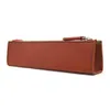 スタンダードなファスナー式ペンケースです。 ハードな作りの三角マチなので机上でしっかりと自立します。 見かけよりも大容量で、サイズによりますが10本以上のペンを収納できます。 端から端までしっかりと開く構造なので出し入れしやすく大変重宝します。 素材はイタリア・サンタクローチェ地方のタンナー:イルポンテ社のバケッタレザー LOS ANGELES(シャイニー)を、インナーにはベージュカラーのマイクロファイバースエードを配色しました。 またエイジング(経年変化)を存分に楽しんでいただける逸品です。 サイズ:約 178 × 38 × 48 mm 外 側:LOS ANGELES(シャイニー) 内 側:マイクロファイバースエード 色・柄:BLUE、GREEN、ORANGE、RED 個 装:上下貼り箱 名入れ:不可